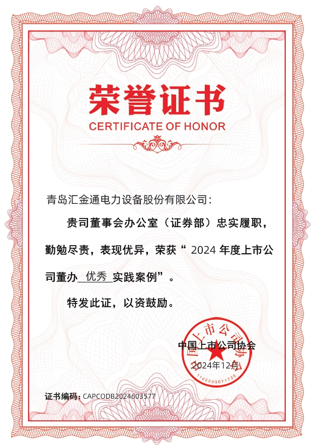 2024年12月19日,中國上市公司協(xié)會“2024上市公司董辦最佳實踐”案例征集活動結(jié)果發(fā)布,匯金通榮獲“2024年度上市公司董辦優(yōu)秀實踐案例”,連續(xù)兩年蟬聯(lián)該殊榮。
