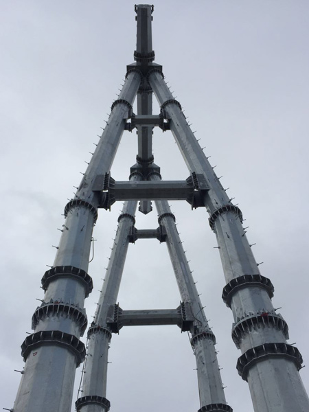 鋼管桿的特點是美觀、簡潔、耐用。桿塔設(shè)計是架空送電線路工程設(shè)計中的重要一環(huán),它直接影響著送電線路的安全運行和造價。據(jù)統(tǒng)計,桿塔造價約占送電線路工程本體造價的37%。而在送電線路工程中,直線桿塔所占桿塔總數(shù)的比重一般達到了80%,對工程的本體造價有著很大的影響,且線路越長,這種影響越明顯。因此,根據(jù)《架空送電線路鋼管桿設(shè)計技術(shù)》規(guī)定,在確保質(zhì)量、安全適用的前提下,設(shè)計上做到了技術(shù)先進、經(jīng)濟合理
